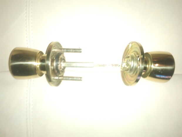 La perilla de la puerta irá a través de los orificios en el enganche, debe alinearse perfectamente. Insertar dos botones en cada lado del agujero que haya hecho conexión unos con otros y el cierre. Atornille los botones juntos y en la puerta que esta haciendo toda una unidad de la puerta.
