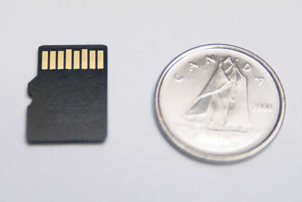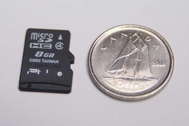 La tarjeta microSD tiene un lado superior y una inferior. Permite llamar el lado con los contactos brillantes la parte inferior. Cuando la tarjeta se mantiene superior hacia arriba, nota el borde derecho con la extraña forma de aleta de tiburón poco a él. Esta es la clave de registro y está destinada a asegurar que la tarjeta se encuentra exactamente en el lugar correcto en la tarjeta microSD. El titular de la tarjeta microSD está diseñado para funcionar sólo si la tarjeta se coloca en la parte superior del soporte hacia arriba, con la clave de registro a la derecha.