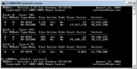 mbrwiz.exe /disk = X/activo = X (X es el número de disco de tu unidad USB)