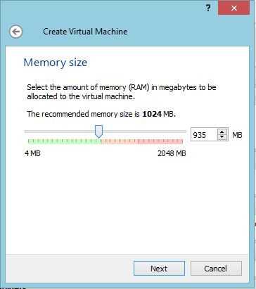 Mantenga la configuración predeterminada de la RAM (1024 MB) o cambiar si es necesario (necesario si tienes 2GB de RAM o más abajo) y haga clic en siguiente.