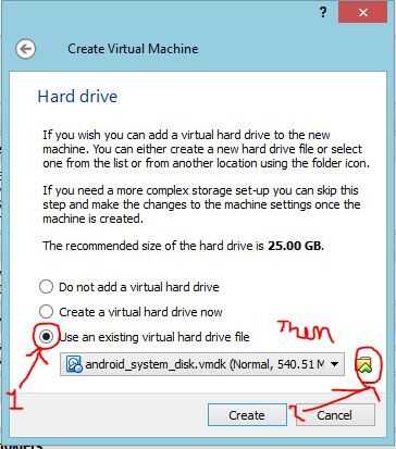 Paso 8: Haga clic en "Usar un Virtual disco duro archivo existente" y haga clic en el icono de carpeta de la izquierda