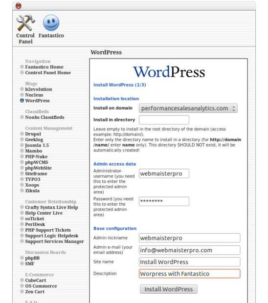 Instalar WordPress en cPanel con Fantastico (5 / 6 paso)