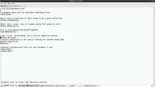 Coloque el archivo de configuración del Control remoto infrarrojo de /etc/lirc