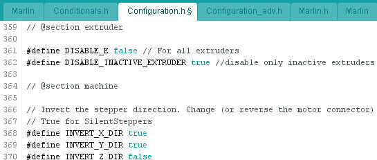 Los cambios se hacen en Configuration.h - Hit CTRL + F y buscar INVERT_X_DIR - la / / para SilentSteppers es solo mi comentario para recordar por qué hice el cambio.