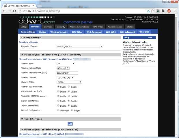 Armado con el conocimiento de nuestro entorno sin hilos, estamos listos para entrar en algunos nueva configuración inalámbrica en DD-WRT. Este es un paso importante, como ajustes modificados para requisitos particulares son necesarios para conseguir el pleno rendimiento de este router. Por suerte, Kong y el DD-WRT foros tienen mas sugerencias. Podrá configurar algunos ajustes de acuerdo con sus recomendaciones, pero estas no son la mejor configuración para cada aplicación. En primer lugar, te configuramos la banda de 2,4 GHz como una red de 802. 11 g/n, compatible con una amplia gama de dispositivos.