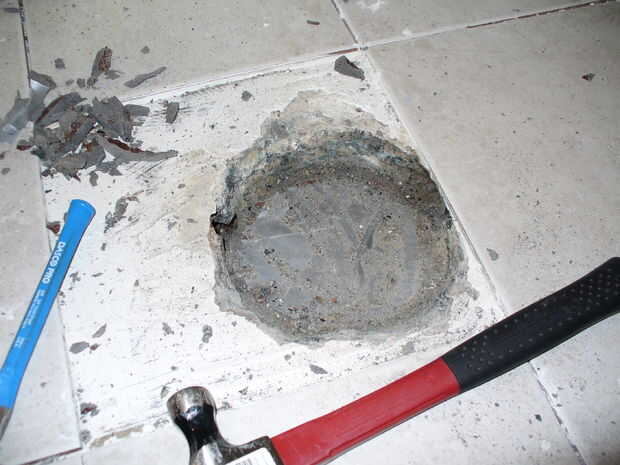 Además, cubrí la parte inferior de la tubería de desagüe con cinta aislante para que ninguno de los fragmentos de arcilla fue en el alcantarillado sanitario.