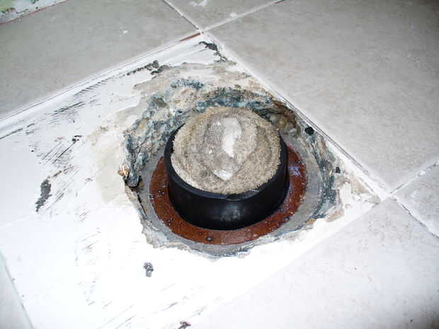 Instale el inodoro sobre hormigón con ningún reborde del armario (5 / 10 paso)