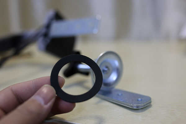 2. la estera de goma antirresbaladizo es para la prevención de la base de desplazamiento alrededor de la mesa y proteger el acabado de su mesa. Aplique cuidadosamente en la parte inferior de la base. También, busque este anillo de goma y adjuntarlo a la perilla.