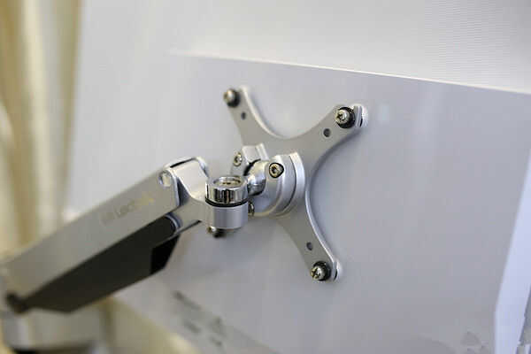 1. en función de tu monitor, usas los agujeros ya sea interiores o exteriores. (El mío es 100 x 100 mm) Coloque la placa de montaje sobre los orificios y será evidente que los agujeros para usar.