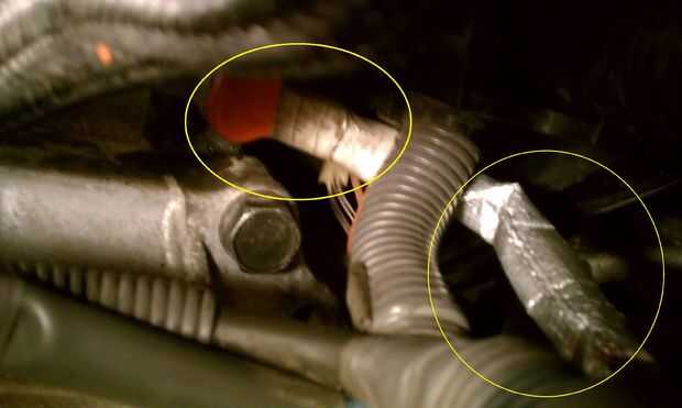 Cuando el cable de tensión de línea se conecta al cartucho, coloque el cable junto con el mazo de cables que está bajo el capó del motor (tienes que quitar la tapa de motor para ello). Use amarres de cable con cremallera. Cuando el cable se encamina correctamente, vuelva a colocar la cubierta del motor. Pase el resto de la cuerda de tensión de línea y asegure con amarres.