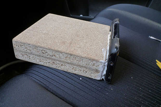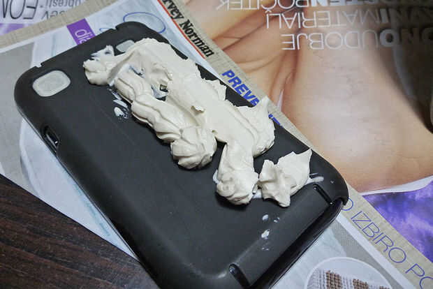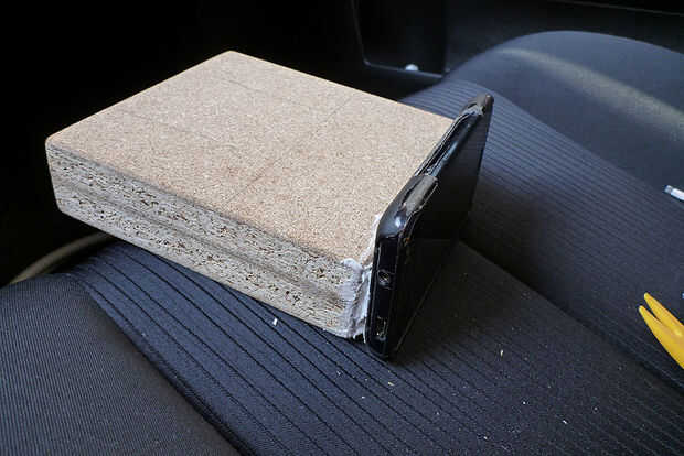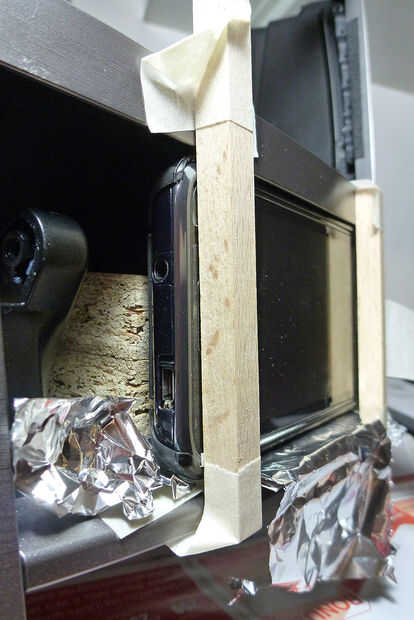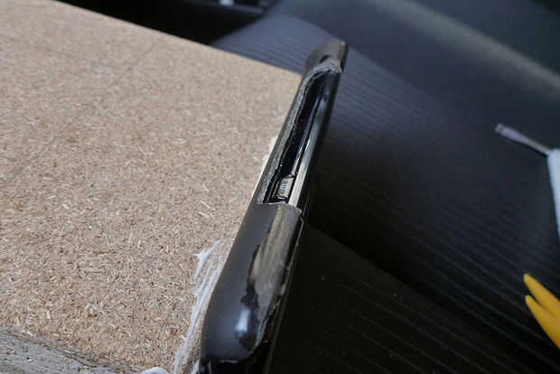Paso 5: Pegar el teléfono con el caso en el conglomerado (13 x 14 cm de x 3.6)
