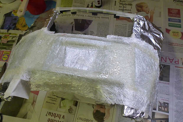 Hacer mezcla potente para fibra de vidrio y hacerlo en el espacio cálido o en sol. Se secará mucho más rápido. Hacer 3-4 capas de fibra de vidrio.