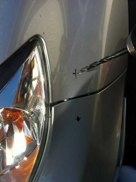 Utilice una broca piloto de tamaño pequeño para hacer un pequeño agujero en el centro de la marca X.