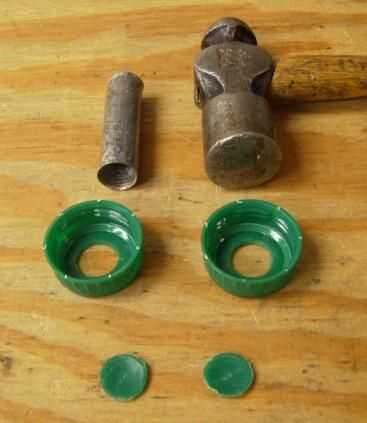 Golpe del kit hizo limpiar los orificios en las tapas cuando golpeaba contra un bloque de copia de seguridad de madera. Los orificios deben ampliarse un poco por el archivo de cola de rata o papel de lija.