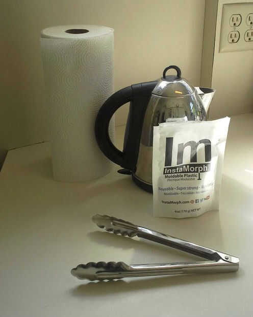 En April Instructables nos ha enviado varios paquetes de InstaMorph para una noche de construir. ¿Qué es InstaMorph? Es no tóxico, ligero poliéster termoplástico - calor para arriba y InstaMorph se hace moldeable; enfriarlo y endurece a un plástico fuerte. InstaMorph es genial para mejoras para el hogar y elaboración de proyectos, así como hacer herramientas útiles.