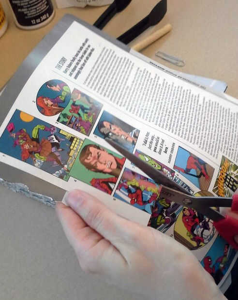 Mirar a través de una novela gráfica o cómic. Encontrar la imagen que desea utilizar y recortarlo con cuidado. Medir el diseño para que usted sepa cuánto hacer el colgante. Hicimos dos colgantes, uno con un cuadro y otro sin.