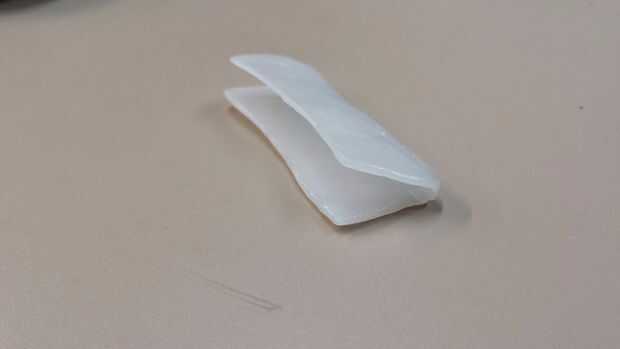 3. Coloque instamorph contra labio Valencia a tamaño real (que tiene que medir?). Comenzar con el instamorph en la parte inferior del labio Valencia, pliegue sobre la parte superior y pliegue nuevamente en el borde para saber cuánto extra para recortar.