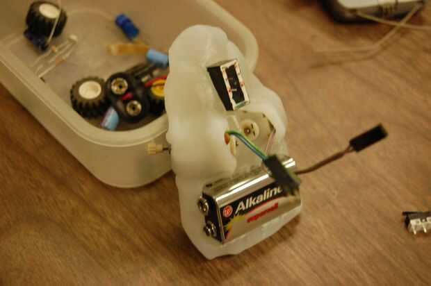 También puede incrustar un interruptor justo en el plástico. En mi caso, decidí no había donde poner el interruptor hasta finales de la construcción; Fui capaz de calentar el extremo posterior de la batería muy bien y presione el interruptor en donde yo quería.