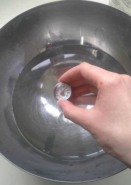 • Calentar el agua hasta unos 150 grados F. El agua puede ser más cálido, pero mucho cuidado tendrá que utilizarse manipulado balines para evitar quemaduras.