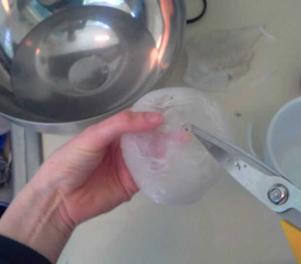 Mientras que la InstaMorph es todavía suave, tomar un par de tijeras y corte un pequeño agujero en el fondo de la olla. Esto permitirá que el agua escapar.