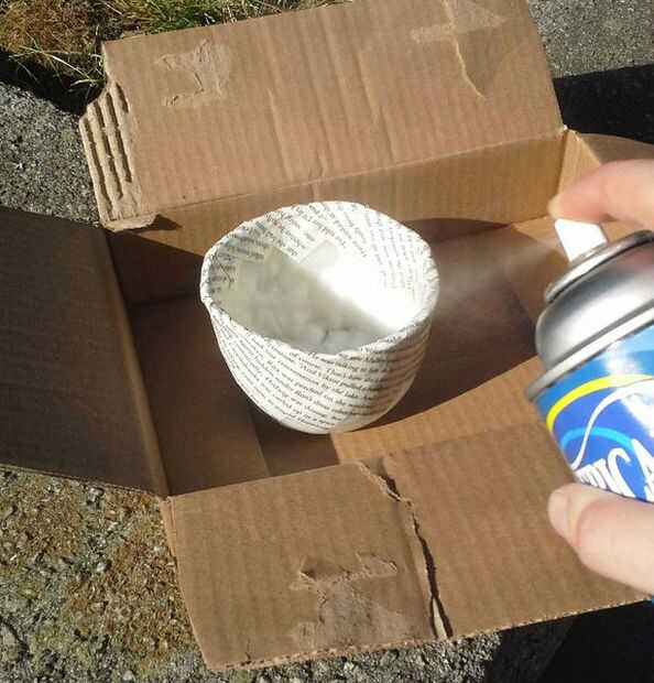 No necesita preocuparse ya mucho sobre cómo el papel se alinea en el interior de la olla, la suciedad cubrirá. Usted quiere estar seguro de que se aplica varias capas de Mod Podge y sellador para proteger contra el agua.