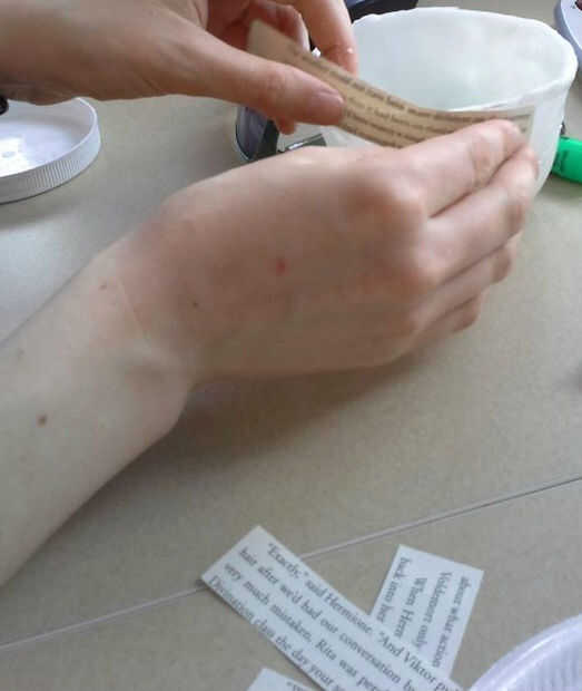 • La capa frontal y la parte posterior de la tira de papel con Mod Podge.