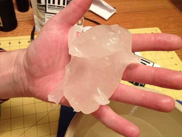 Usé un recipiente de cerámica y vertido en el paquete de Instamorph. Vende por $9.99 en Amazon. Puede recalentarse y reformado, así que a pesar de no usar todo el paquete para este proyecto, todavía calienta todo. Vertieron agua hirviendo sobre ella, esperado, era aún separados los granos. Echó fuera del agua y vierte agua hirviendo sobre ella. Todavía no flexible. Hice esto varias veces y finalmente consiguió un taco de plástico moldeable. (no un fan de perder todo lo que el agua!) Al principio traté de hacer una pequeña rejilla para plántulas. Este producto no es adecuado para detalles finos o pequeños. Se endurece demasiado rápido, no se puede cortar con tijeras o bisturí. Había pegado a mi alfombra artesanal y lo arruinó. Frustrante!!!