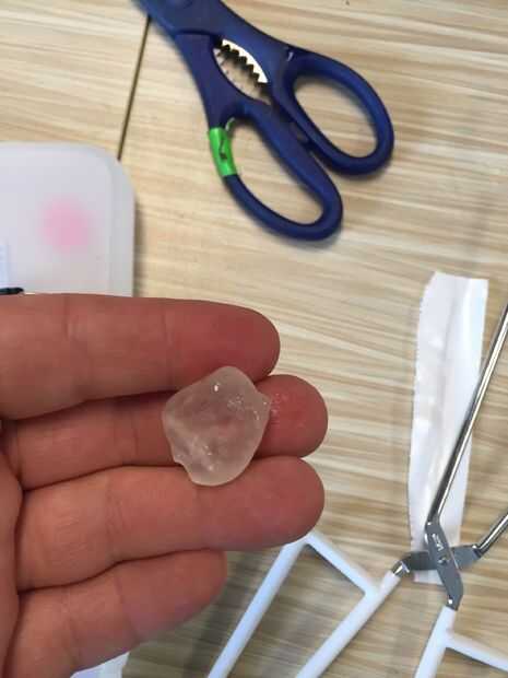 Una vez que el InstaMorph es claro y listo, use las pinzas para tirar de una parte fuera del agua. Exprima el agua que puede permanecer, luego elegir fuera un trozo a usar.