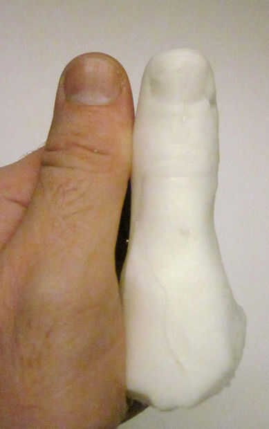 Permite Oogoo para unas horas. Una vez ajustada, libera Oogoo de Instamorph fácilmente. Si son moldeado algo profundo, (como un pulgar) puede dejar correr agua caliente sobre el molde para ablandar la Instamorph y pele de la Oogoo. Destruirá su molde de esta forma, pero con la capacidad de trabajo de Instamorph, creando otro molde lleva muy poco tiempo.
