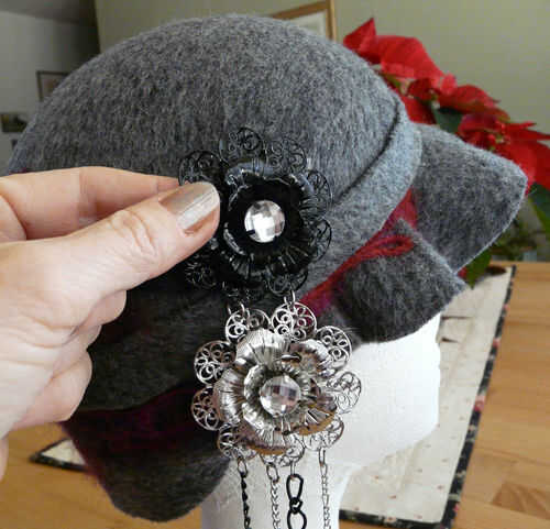 Conecte cualquier cosa metálica que el imán exterior. Estas son las cosas que utilicé aquí: un collar roto, un par de tijeras, un puñado de clips de papel, un adorno del árbol de Navidad y las agallas internas de mi lámpara de steampluck.