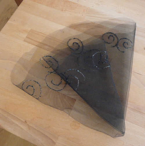 Puede añadir gran instantánea a su sombrero bling poniendo en red. Para este instructable, tomó un trozo circular de malla negro, dibujaba formas espirales alrededor de los bordes con pegamento y salpicado brillo negro sobre el pegamento para crear un magnífico accesorio para los otros componentes de bling. Para utilizar la red, doblar el círculo por la mitad, luego por la mitad otra vez para formar un cono, luego crujir hasta el punto del cono y utiliza el imán para sujetar el sombrero.