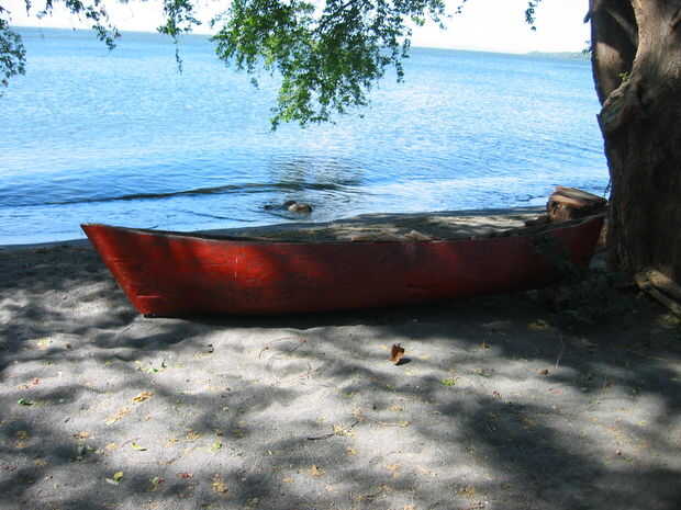Aquí es una piragua nicaragüense con un par de remos instantáneas en Isla Ometepe en el lago de Nicaragua. Las hojas son clavadas a los ejes y lo clavos clinched (doblado encima). Vi otros con palas amarradas. Observe los toletes de silla y cuerda simple. Repentinos vientos de 30mph del resorte para arriba en el lago. Los pescadores necesitan remos para avanzar alguna contra él.