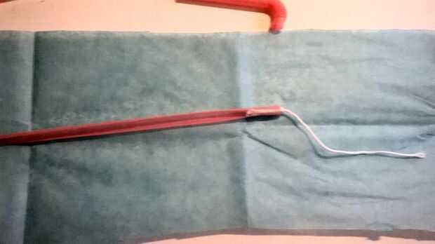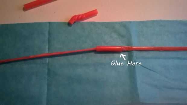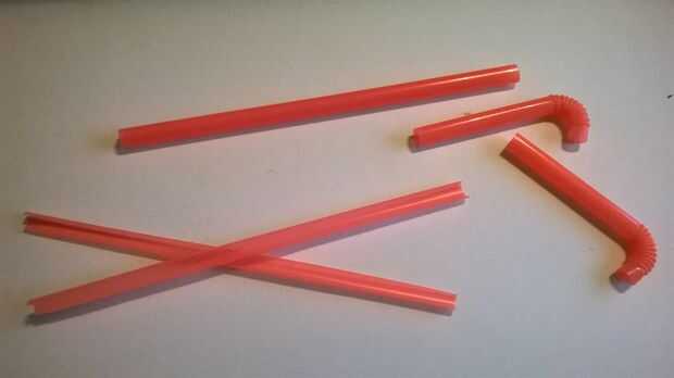 Desde que tuve la paja flexible les corté justo por debajo de la flexión. Luego corté la pieza más larga longitudinalmente para hacer dos mitades como se muestra en la foto A.