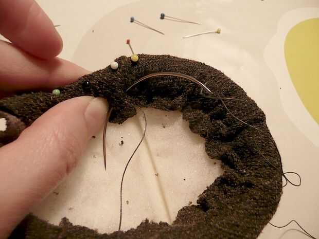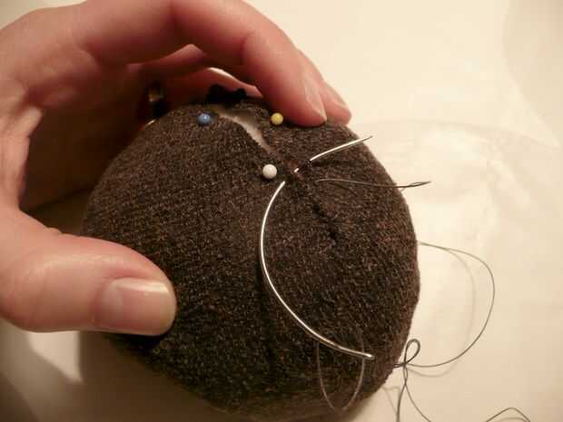 7. coser a la tela a la espuma, bien dentro del vientre. La aguja curvada demostrará su poder aquí!