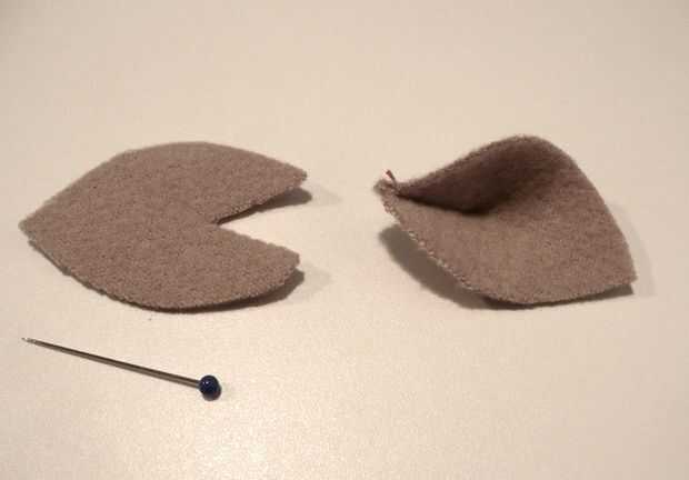 3. cortar dos orejas de fieltro, ver foto de la forma. Doblarlas y coser para cerrar la ranura.