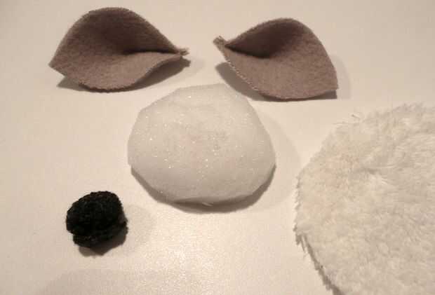 2. Corte una pieza de lana blanca para cubrir la espuma. PIN suavemente y coser sobre la espuma.