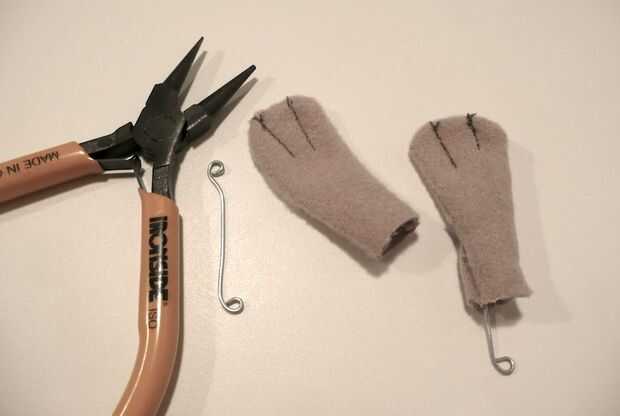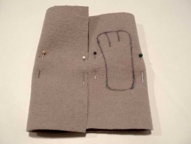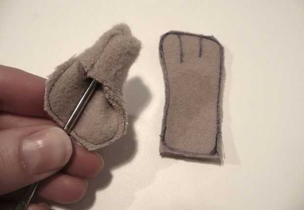 1. tomar un trozo de fieltro marrón claro (el mismo que usaste para los oídos) y dóblalo. Dibujar dos pies, ver foto.