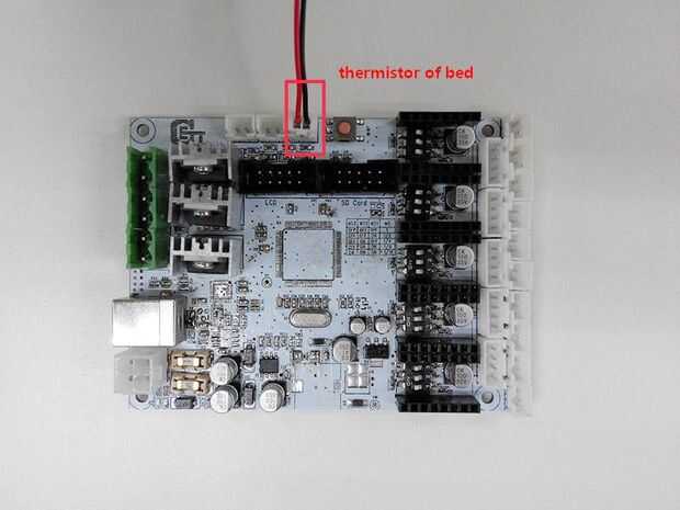 1) Conecte los cables de termistor de heatbed.
