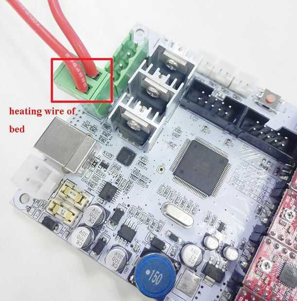 1) Conecte los cables de calefacción para heatbed.