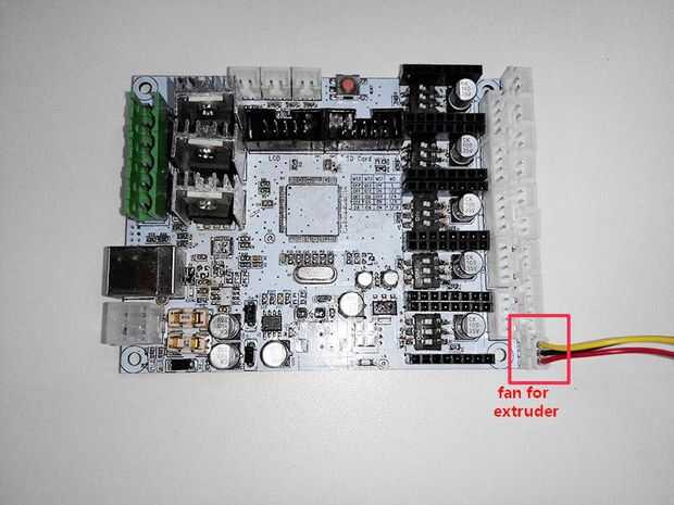 3) Conecte el ventilador para hotend en el ventilador PWM.