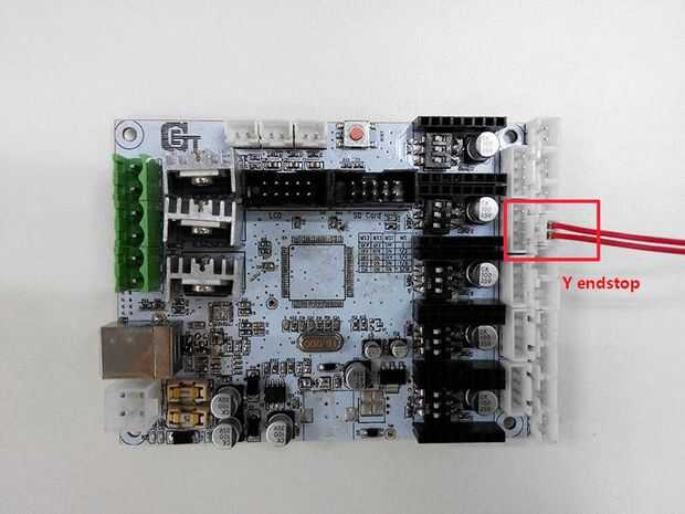 2) Conecte los cables de tope del eje y en Y-max.