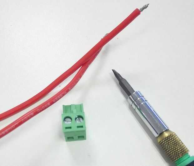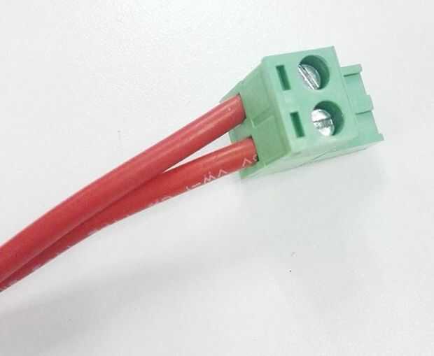 Suelto los tornillos en la terminal verde y poner los cables rojos en la ranura y atornillar para arriba.