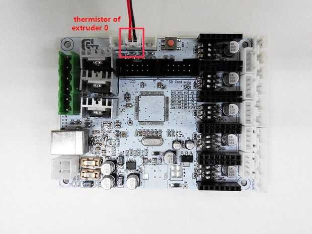 2) Conecte los cables de termistor de extrusora 0.