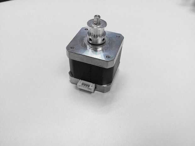 Paso 1. Montar la polea en el eje del motor, uno de los tornillos de rosca en la sección de Cruz del eje. No atornille demasiado apretado para activar sin problemas.