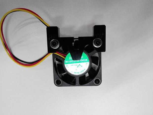 Paso 1. Montar el ventilador en el soporte del ventilador; tornillo para arriba con 2 Tornillo M3 X 25 y M3 tuerca y arandela.