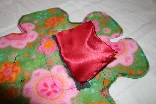 Dale a Hugo una boca! Coser un pedazo de tela en la parte delantera y corte abierto en el centro de la cremallera. Cómo en la imagen a ver. Ahora llevas el bolso pequeño, después de uno cose y cose en. Como la imagen b es muestra.