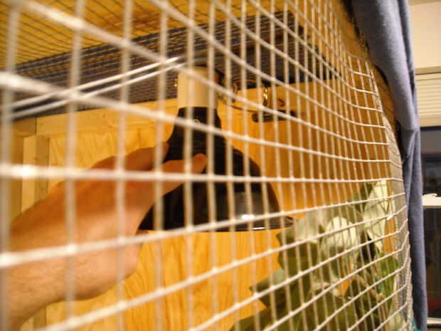 2. seleccionar un área de calentamiento en la jaula donde va a construir una estantería o coloque una rama