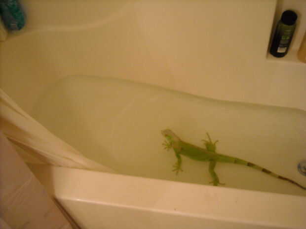 3. bañar la iguana por lo menos una vez por semana en una gran tina de baño o bolsa dependiendo del tamaño de la iguana (baños deben durar de 15 a 30 minutos)
