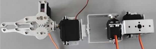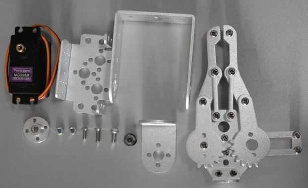 He comprado un brazo mecánico antes de algunos días. Su imagen se ve un poco lindo. Hay dos colores para los consumidores a elegir, blanco y negro. Me decidí por uno negro.Hay cuatro servos para él. Primero uno debe controlar su mano mecánica para co
