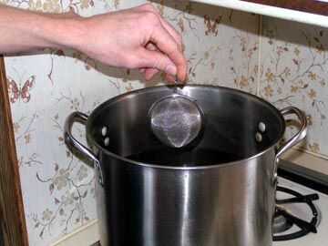 Después de que el endulzante se disuelva, apagar el fuego, añada 6 bolsitas de té o 6 cucharaditas de té suelto una bola de té, cubierta y empinadas durante diez minutos. Comúnmente se utiliza té verde o negro o se puede utilizar una combinación de ambos. No dude en probar otros tés con sabor no excepto tés de hierbas. Tés de hierbas pueden contener aceites que no les gusta las culturas de kombucha. Si desea agregar los beneficios del té de hierbas pueden colarlos separado y agregarlos después de que el proceso de fermentación está completo y que ha dibujado el té para el consumo.
